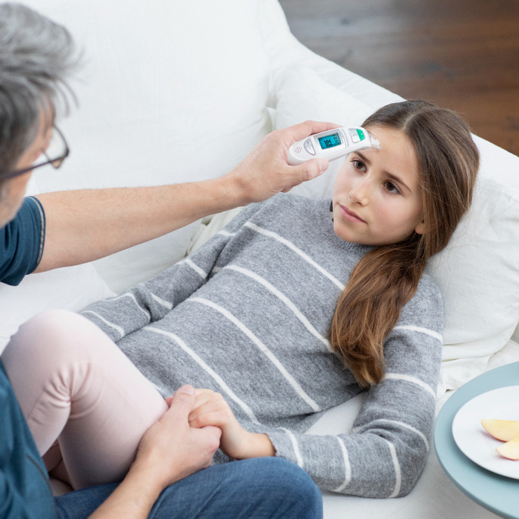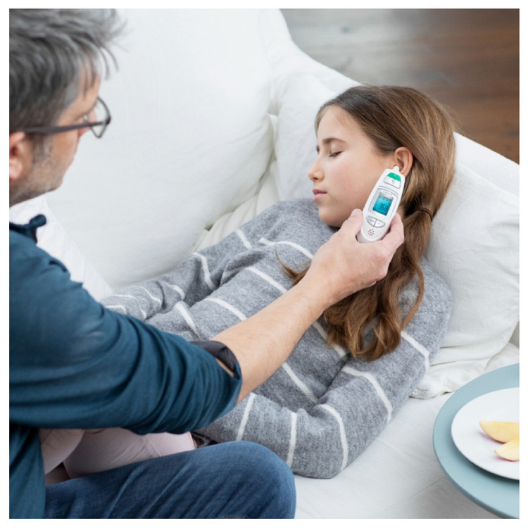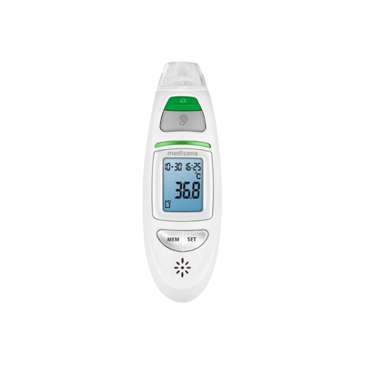 اندازه گیری دقیق دمای بدن در چند ثانیه روی پیشانی و گوش با دماسنج مادون قرمز TM 750 می توانید اندازه گیری دقیق دمای بدن را روی پیشانی یا گوش انجام دهید. علاوه بر اندازه گیری دمای بدن، دماسنج مادون قرمز TM 750 را می توان برای اندازه گیری دمای جسم، به عنوان مثال دمای محیط، دمای مایعات یا سطوح نیز استفاده کرد. به نتایج تست Haus & Garten Test نمایش تاریخ و زمان ذخیره سازی خودکار 30 قرائت آخر اندازه گیری دقیق دمای بدن در چند ثانیه روی پیشانی و گوش سیگنال صوتی زمانی که آماده اندازه گیری است و زمانی که اندازه گیری کامل شده است هشدار تب نوری با تغییر رنگ عملکرد اضافی: اندازه گیری دمای محیط، مایعات و سطوح محصول پزشکی تایید شده است.
