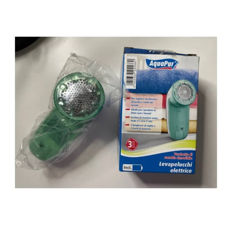 پرز پاک کن برقی آکیواپور از Lidl ابزاری برای از بین بردن پرز و گره های سطحی از لباس های پشمی یا مواد دیگر، همچنین قابل استفاده بر روی پارچه هایی مانند پتو و صندلی راحتی. با باتری کار می کند، دارای تنظیمات مختلف برای سرعت و ارتفاع برش است.با دو باتری AA (اندازه AA، LR6) تغذیه می شود.دارای سینی قابل جابجایی برای جمع آوری پرزهای میباشد. دو سطح سرعت با چرخاندن حلقه جلو بین 3 ارتفاع مختلف برش را انتخاب می کنیم.