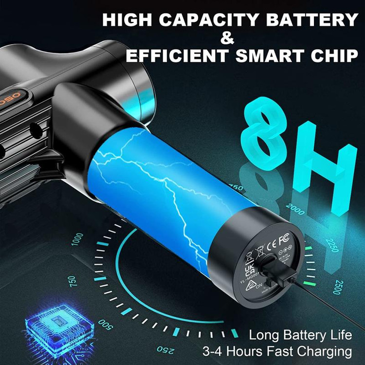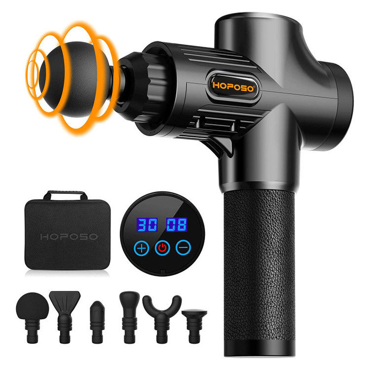 این ماساژور تفنگی از برند HOPOSO بی سیم و سبک، دارای نمایشگر دیجیتال LED با کلید لمسی برای تنظیم سرعت میباشد، موتور این دستگاه نسبت به نسل های قبلی تقویت شده و قدرت بالایی دارد و با فشار زیاد به عضله هم استپ نمیشود. کاربرد این ماساژور برای رهایی از خستگی عضلانی بسیار موثر است و دارای 6 نوع سری مختلف میباشد که یک تجربه ماساژ آرامش بخش را بوجود می آورد و باعث کاهش دردو آسیب های استخوانی میگردد.به رفع درد و سفتی عضلات کمک می کند و دامنه حرکت را بهبود و همچنین گردش خون را ارتقا می بخشد و باعث تسریع در گرم شدن و بهبودی عضلات می گردد. وباعث کاهش درد عضلانی بعد از تمرین های سخت وفشرده ورزشی برای ورزشکاران میگردد . این ماساژور عضلانی تا 4800 دور در دقیقه حرکت و امکان تسکین عضلات رافراهم می آورد و همچنین قابل تنظیم تا 30 نوع سرعت لرزش میباشد.سر توپی گرد که مناسب برای آرامش عضلات بدن است. سر گلوله ای برای قسمت های مفصلی مانند مفاصل پا ، بافت های عمیق و نواحی عضله مناسب است. سر به شکل U که عمدتا برای ستون فقرات ، گردن و شانه برای عضلات حساس یا بافتهای نرم استفاده می شود. سر صاف برای آرامش کامل عضلات بدن مانند پشت و پا مناسب میباشد. این محصول با 3 ساعت شارژ به مدت 8 ساعت قابل استفاده است و دارای کیف مخصوص میباشد.