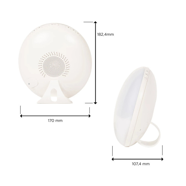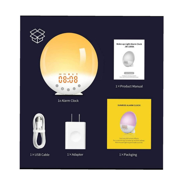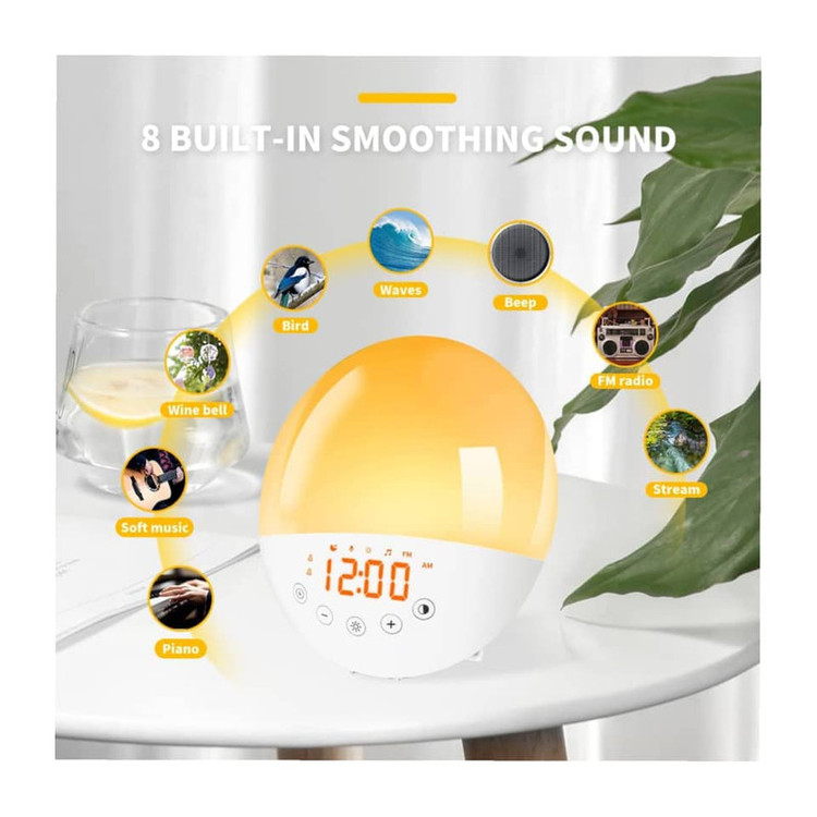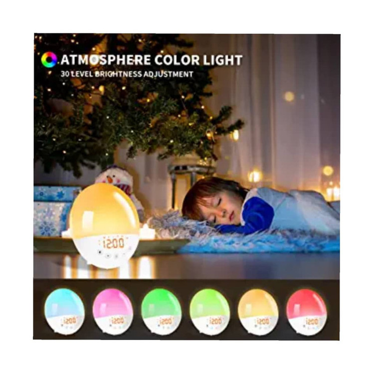 این رادیو ساعت زنگ دار دیجیتال کمک به خواب در واقع برای همه به خصوص برای بچه ها طراحی شده است. شبیه سازی طلوع خورشید قبل از زمان زنگ هشدار برای کمک به بیدار شدن طبیعی است.این ساعت زنگ دار هوشمند دارای دو زنگ هشدار به طور همزمان است، شما می توانید آلارم های مختلف را با توجه به زمان کار و استراحت خود تنظیم کنید. دکمه چرت زدن با طراحی ویژه به شما امکان می دهد با ضربه زدن 5 9 دقیقه دیگر چرت بزنید.این رادیو ساعتی برای اتاق خواب است، شما نه تنها می توانید رادیو FM را در فرکانس 76.0-108.0 مگاهرتز به صورت خودکار یا دستی جستجو کنید، بلکه چراغ هوشمند 8 صدای طبیعی را نیز برای بیدار کردن شما انتخاب می کند. .6 نور تغییر رنگ وجود دارد که می توانید انتخاب کنید، شامل صورتی، نارنجی، فیروزه ای، سبز، قرمز، آبی. روشنایی نمایش زمان LED 3 سطح و روشنایی نور 30 سطح قابل تنظیم است. این چراغ غروب می تواند موسیقی و صداهای مورد علاقه شما را به عنوان آلارم ضبط کند. دارای پورت USB 5V/2A است. این می تواند تلفن، تبلت یا سایر دستگاه های الکترونیکی 5 ولت شما را شارژ کند.