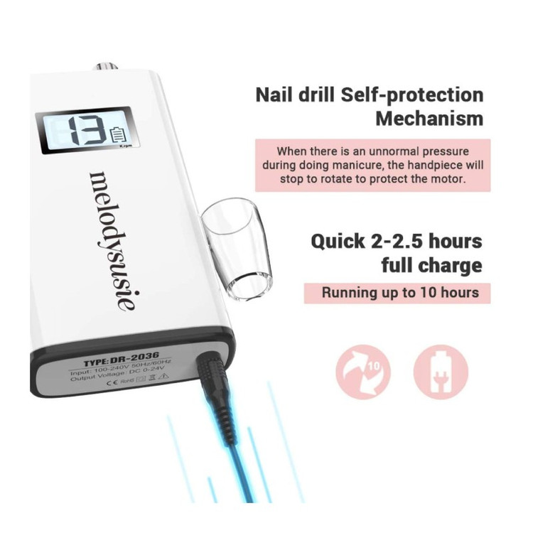 سوهان برقی قابل شارژ melodysusie با سرعت بالا تا 30000 دور در دقیقه، این دریل میخکوبی حرفه ای مجهز به بلبرینگ باکیفیت است که با چرخاندن دستگیره کنترل سرعت به راحتی با سرعت بالا و قابل تنظیم (0-30000 دور در دقیقه) به راحتی کار می کند. این یک فایل ایده آل برای تکنسین های حرفه ای در سالن و مبتدیانی است که سفر خود را به سمت زیبایی ناخن در خانه آغاز می کنند. افیل دارای گشتاور عالی است تا از توقف گهگاهی هنگام اعمال فشار مناسب جلوگیری کند. عالی برای صاف کردن ناخن ها، سوهان دادن به شکل ناخن های مختلف و صاف کردن پینه ها یا پوست سفت شده روی دست ها و پاهای شماست.با ظرفیت باتری بزرگ (2000 میلی آمپر)، می توانید از این دریل ناخن در هر مکانی و در هر زمان استفاده کنید. سوهان برقی ناخن با شارژ کامل حدود 2 تا 2.5 ساعت تا 10 ساعت کار می کند. صفحه نمایش LCD هوشمند، دور گرانبها و برق را نمایش می دهد. گیره کمربند بدنه به شما این امکان را می دهد که آن را روی کمربند خود روی کمر آویزان کنید و به اندازه کافی جمع و جور اسن تا در کیف یا کیف مسافرتی خود قرار دهید. ساخته شده از فلز الماس درجه یک، این کیت تکههای ناخن برای سوهان کردن، سوراخ کردن و از بین بردن ناخنهای آکریلیک به اندازه کافی قوی است. 10 قطعه با اشکال و اندازه های مختلف طراحی می کند، نیازهای متنوع شما را برآورده می کند، به شما این امکان را می دهد که بستر ناخن را آماده کنید، ناحیه کوتیکول را تمیز کنید،ناخن را شکل داده و کوتاه کنید،به آرامی روی سطح را بردارید سوراخ های ناخن را سوراخ کنید و غیره.