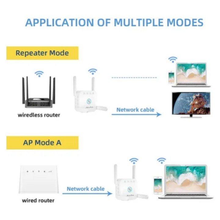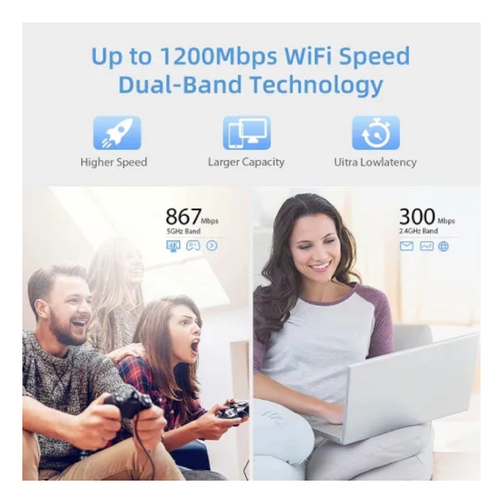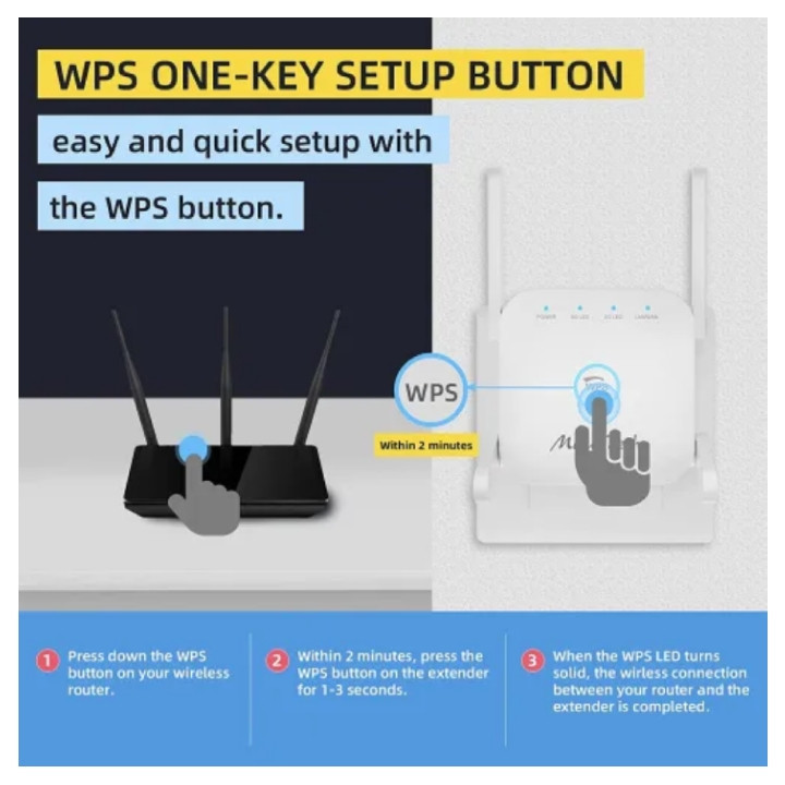 تقویت کننده وایفا بدون نقطه کور MiluoTech که منطقه سیگنال موجود شما را به طور موثر گسترش می دهد (تا 360 درجه، 5000 فوت مربع را پوشش می دهد). مجهز به آنتن های خارجی 4x3dBi، که عملکرد نفوذ دیوار را تقویت می کند و بهترین سیگنال WiFi را در هر اینچ از خانه شما ارائه می دهد.این تقویت کننده وای فای تا 867 مگابیت در ثانیه برای باند 5 گیگاهرتز و 300 مگابیت در ثانیه برای باند 2.4 گیگاهرتز ارائه می دهد. با انتخاب باند مناسب از بهترین عملکرد وای فای لذت ببرید. باند 2.4 گیگاهرتز 300 مگابیت بر ثانیه برای انتقال داده از راه دور، بهترین اتصال وای فای برای سیستم زنگ در/دوربین امنیتی. باند قدرتمند 867 مگابیت در ثانیه 5 گیگاهرتز سرعت Wi-Fi ایده آل را برای بازی های آنلاین، کنفرانس های ویدئویی، ویدئوهای 4K HD و غیره ارائه می دهد. دکمه WPS را روی روتر موجود و تقویت کننده WiFi فشار دهید تا فوراً پوشش شبکه خود را در عرض 10 ثانیه گسترش دهید. یا از طریق مرورگر وب (setup.pix-link.net) در تلفن هوشمند / رایانه لوحی تنظیم کنید. LED هوشمند به شما کمک می کند مکان ایده آلی برای قرار دادن اکستندر پیدا کنید. 【سازگاری جهانی】MiluoTech WiFi Extender با تمام روترها یا دروازههای استاندارد سازگار است، نگران مشکل سازگاری نباشید. با پورت اترنت، می توانید اتصال سیمی/بی سیم را انتخاب کنید. از رمزگذاری پیشرفته امنیتی بی سیم (WPA/WPA2 PSK) پشتیبانی می کند، به طور موثر از تداخل مخرب خارجی جلوگیری می کند و از همه دسترسی های غیرمجاز جلوگیری می کند، غریبه ها و هکرها را بیرون نگه می دارد.