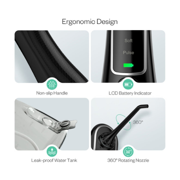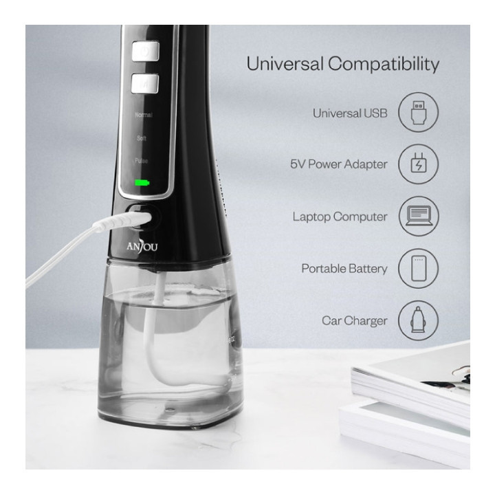 دستگاه واترجت ANJOU جدیدترین تکنیک پالس فلوسر آب 2020 را بپذیرید، محدوده فشار 30-120PSI، پالس آب با فشار بالا 1400-1800 بار در دقیقه، نازل چرخشی 360 درجه، فلوسر آب شارژی Anjou می تواند 9% مواد غذایی را تمیز کند. هر گوشه را پلاک کنید. آبیاری خوراکی قابل شارژ ما با باتری لیتیومی قدرتمند می تواند پس از شارژ کامل به مدت 15 روز به طور مداوم استفاده شود. طراحی شارژ رابط USB برای انواع تجهیزات شارژ با یک کیسه ذخیره سازی مناسب برای سفر مناسب است. پاک کننده دندان دارای حالت های نرمال، نرم و پالس برای انتخاب با طراحی کم نویز است که می تواند نیازهای مختلف دهان را برآورده کند. طراحی ضد آب IPX7 در هر دو حالت داخلی و خارجی برای ارائه حفاظت دوگانه اتخاذ شده است. طراحی هوشمند از نشتی جلوگیری می کند و اجازه می دهد تا نخ دندان با خیال راحت برای دوش گرفتن در حمام استفاده شود. مخزن آب قابل جابجایی ارتقا یافته و با بازشو کامل به شما امکان می دهد رسوبات آهک و پلاک دندانی را کاملا تمیز کنید. فلوسر آب دارای یک زهکش داخلی ضد نشتی منحصر به فرد و طراحی جداشدنی برای تجربه ای تمیز و راحت است. نخ آب آنژو تجربه محصول خوبی را برای شما به ارمغان می آورد.