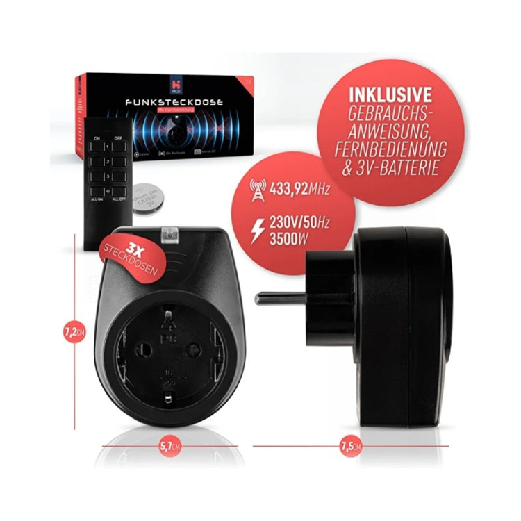 پریز کنترل از راه دور HILLI دستگاه های روشنایی یا الکتریکی خود را به راحتی از طریق کنترل از راه دور روشن و خاموش کنید. می تواند برای چندین دستگاه استفاده شود و به شما امکان می دهد مصرف برق را بهتر کنترل کنید. با کنترل از راه دور، می توانید دستگاه های خود را در محدوده 30 متری کار کنید. به عنوان مثال، می توانید تلویزیون را از اتاق دیگری خاموش کنید یا از سوئیچ های سخت در دسترس استفاده کنید برای تنظیم کلید رادیویی با کنترل از راه دور، دفترچه راهنما گنجانده شده است. پس از چند ثانیه ریموت کنترل به پریزها متصل می شود و می توانید از مدار گروهی یا تکی استفاده کنید. می توانید عملکرد را از طریق چراغ LED روی دوشاخه رادیویی تشخیص دهید. اگر از تمام دوشاخه ها از طریق شماره گذاری روی کنترل از راه دور استفاده کنید، وضعیت سوکت رادیویی مربوطه را با چراغ نشانگر مشاهده خواهید کرد.