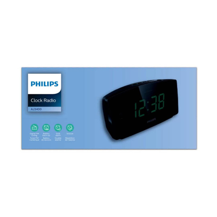 رادیو ساعت زنگ دار فیلیپس اطلاعات آن کاملاً واضح است. به لطف صفحه نمایش بزرگ آن، شما همیشه به زمان نگاه خواهید داشت. که این رادیو ساعت را برای افراد مسن ایده آل می کند این رادیو ساعت زنگ دار به لطف تیونر دیجیتال داخلی FM به شما امکان دسترسی به ایستگاه های رادیویی مورد علاقه شخصی شما را می دهد. در این رادیو ساعت زنگ دار می توان دو زمان زنگ ساعت را تنظیم کرد. این رادیو ساعت خوابیدن را آسانتر میکند. از تایمر خواب استفاده کنید تا فقط برای مدت زمان از پیش تعیین شده به موسیقی خود گوش دهید. سپس دستگاه به طور خودکار خاموش می شود.