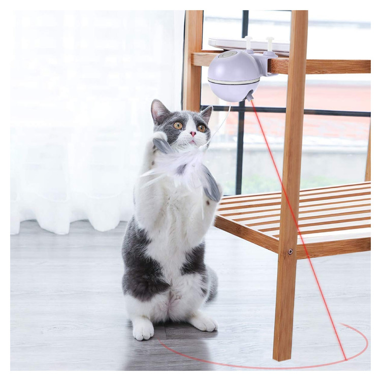 اسباب بازی گربه 2 در 1 - اسباب بازی گربه تعاملی هر دو اسباب بازی پر گربه را با اسباب بازی تعقیب گربه خودکار ترکیب می کند، دو اسباب بازی مختلف در یک اسباب بازی برای گربه شما برای بازی همزمان. می تواند به سرعت همبازی گربه شما شود و به طور موثر به گربه شما کمک کند استرس را کاهش دهد و رفتار مخرب را کاهش دهد. شارژ USB - ما یک کابل USB ارائه می دهیم، بنابراین برای شارژ راحت است. باتری لیتیومی قابل شارژ داخلی 2000mah. بدون نیاز به تعویض باتری های جدید و از طریق هر وسیله ای قابل شارژ است. پس از شارژ کامل، اسباب بازی گربه 8 ساعت زمان بازی را فراهم می کند. چرخش 360 درجه - فقط دکمه را فشار دهید و سپس اسباب بازی تیزر گربه به طور خودکار 360 درجه می چرخد، پر و لیزر به طور تصادفی در کف و دیوار حرکت می کنند، که می تواند توجه گربه شما را جلب کند و غریزه شکار گربه ها را بیدار کند. شما بچه گربه دیگر احساس بی حوصلگی و تنهایی نخواهید کرد. نصب آسان - اسباب بازی الکترونیکی گربه را می توان به راحتی به درخت گربه، پای میز یا صندلی (ضخامت آن از 24 میلی متر تجاوز نمی کند) گره زد تا زمینه فعالیت بیشتری را برای حیوان خانگی فراهم کند تا هنگام بازی بچه گربه شما از برخورد جلوگیری کند. عملکرد خاموش شدن خودکار - پس از 30 دقیقه کار به طور خودکار خاموش می شود و از بازی بیش از حد گربه و در عین حال صرفه جویی در عمر باتری جلوگیری می کند. وقتی گربه آن را گرفت، اسباب بازی گربه نور دوباره کار خواهد کرد. ایده آل برای کسانی که زمانی برای تماشای بچه گربه های شما در حین بازی ندارند.