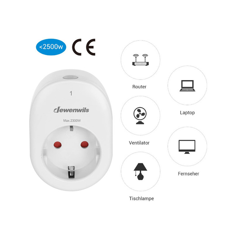 پریز های ریموت دار DEWENWILS سیگنال RF قوی از طریق دیوارها و درها بدون تداخل کار می کند. برد تا 30 متر در فضای باز بدون مانع؛ به هیچ خط دید بین کنترل از راه دور و سوکت نیاز ندارد. فرکانس کاری 433.92 مگاهرتز عملکرد خودآموز: کنترل از راه دور قابل حمل اضافی و سوکت (فقط در همان مدل) موجود است. فرستنده دستی و گیرنده رادیویی برای استفاده فوری از قبل برنامه ریزی شده است.مصرف انرژی در حالت آماده به کار را حذف کنید و مصرف انرژی را کاهش دهید. پریز حتی پس از قطع برق برای صرفه جویی در مصرف انرژی و قبض برق شما خاموش می ماند. مصرف برق در حالت آماده به کار پریز تنها 0.6 وات است. نصب بدون دردسر. بدون برنامه نویسی یا ابزار مورد نیاز؛ باتری گنجانده شده است. ایمنی یکپارچه کودک؛ ایده آل برای افراد مسن و کسانی که تحرک محدود یا کمردرد دارند کنترل از راه دور بیسیم: با فشار دادن دکمه، نورهای داخلی مانند چراغهای کریسمس، چراغ آویز پلاگین، لامپ، تجهیزات الکترونیکی غیرقابل دسترسی، چراغهای کریسمس و سایر دستگاههای الکترونیکی را از راه دور روشن یا خاموش کنید. کنترل از راه دور با کمک عملکرد ALL ON و ALL OFF راحتی بیشتری را برای راه پله ها، زیرزمین ها، گاراژها و اتاق زیر شیروانی ارائه می دهد.