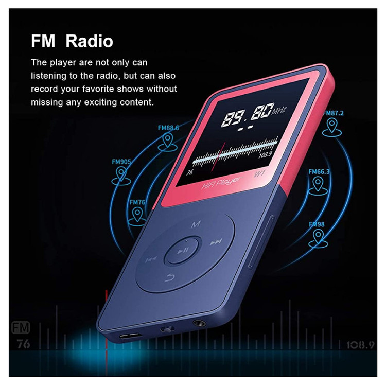 پخش کننده MP3، پخش کننده موسیقی Vorstik HIFI، پخش کننده صوتی دیجیتال 1.8 اینچی با رادیو FM/ضبط صدا/ پخش ویدئو/خواندن متن، تا 90 ساعت زمان پخش، 8 گیگابایت کارت TF 128 گیگابایتی قابل ارتقا