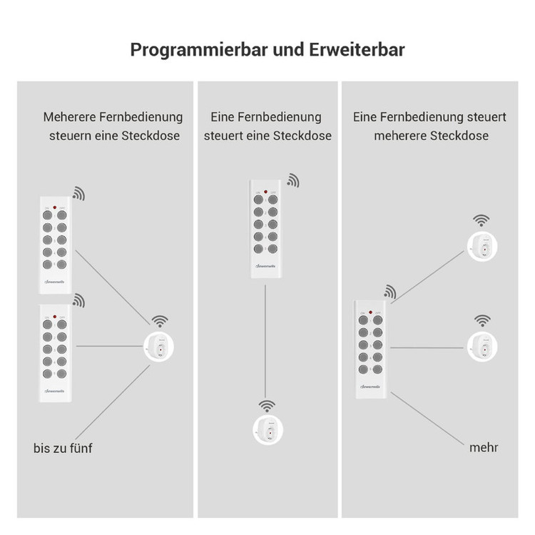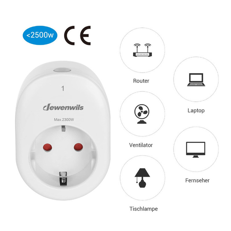 پریز های ریموت دار DEWENWILS سیگنال RF قوی از طریق دیوارها و درها بدون تداخل کار می کند. برد تا 30 متر در فضای باز بدون مانع؛ به هیچ خط دید بین کنترل از راه دور و سوکت نیاز ندارد. فرکانس کاری 433.92 مگاهرتز عملکرد خودآموز: کنترل از راه دور قابل حمل اضافی و سوکت (فقط در همان مدل) موجود است. فرستنده دستی و گیرنده رادیویی برای استفاده فوری از قبل برنامه ریزی شده است.مصرف انرژی در حالت آماده به کار را حذف کنید و مصرف انرژی را کاهش دهید. پریز حتی پس از قطع برق برای صرفه جویی در مصرف انرژی و قبض برق شما خاموش می ماند. مصرف برق در حالت آماده به کار پریز تنها 0.6 وات است. نصب بدون دردسر. بدون برنامه نویسی یا ابزار مورد نیاز؛ باتری گنجانده شده است. ایمنی یکپارچه کودک؛ ایده آل برای افراد مسن و کسانی که تحرک محدود یا کمردرد دارند کنترل از راه دور بیسیم: با فشار دادن دکمه، نورهای داخلی مانند چراغهای کریسمس، چراغ آویز پلاگین، لامپ، تجهیزات الکترونیکی غیرقابل دسترسی، چراغهای کریسمس و سایر دستگاههای الکترونیکی را از راه دور روشن یا خاموش کنید. کنترل از راه دور با کمک عملکرد ALL ON و ALL OFF راحتی بیشتری را برای راه پله ها، زیرزمین ها، گاراژها و اتاق زیر شیروانی ارائه می دهد.