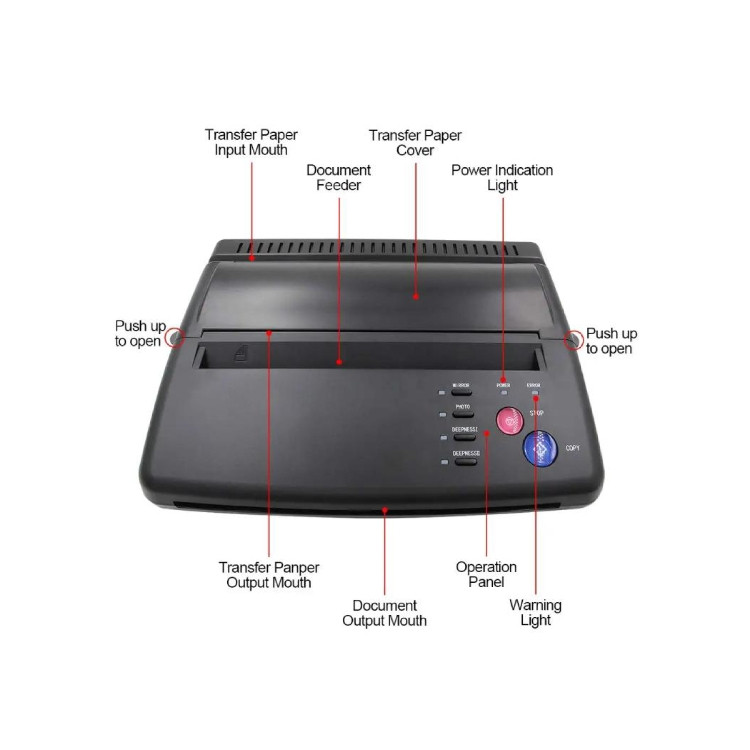 یک تاتو آرتیست حرفهای بخوبی درک میکند که انتقال دقیق طرح روی کاغذ استنسل زمانبر و طاقتفرساست؛ اما با دستگاه پرینتر تتو در سایزهای مختلف از A5 تا A4 هر طرحی قابل چاپ شدن است.