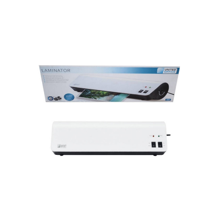 دستگاه لمینت A4 UNITED OFFICE® اندازه کاغذ: حداکثر A4 دوره گرم شدن: 2 دقیقه لایه تقویت شده: 80-125 میکرون (گرم) | 200 میکرون (کود)