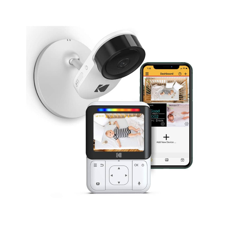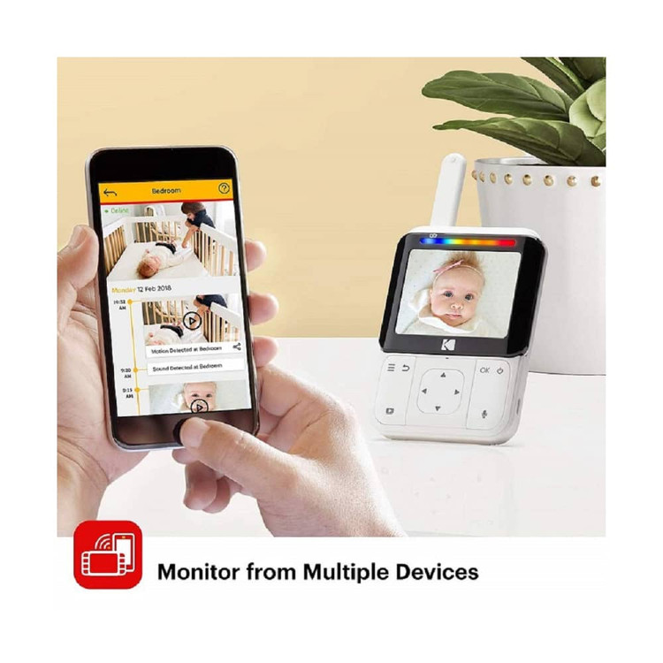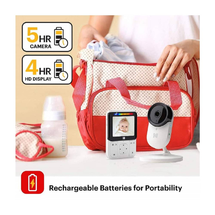 آرامش قابل حمل: با باتری های قابل شارژ در دوربین کودک و مانیتور کودک 2.8 اینچی جمع و جور 2.8 اینچی، به راحتی به چیزی که دوست دارید متصل بمانید. ✔ وقتی مهم است اطلاع داده میشود: با دانستن اینکه برنامه خانه هوشمند KODAK اعلانهای حرکت/صدا را در هر کجا که هستید از طریق WiFi به تلفن هوشمند شما ارائه میکند، راحت باشید.