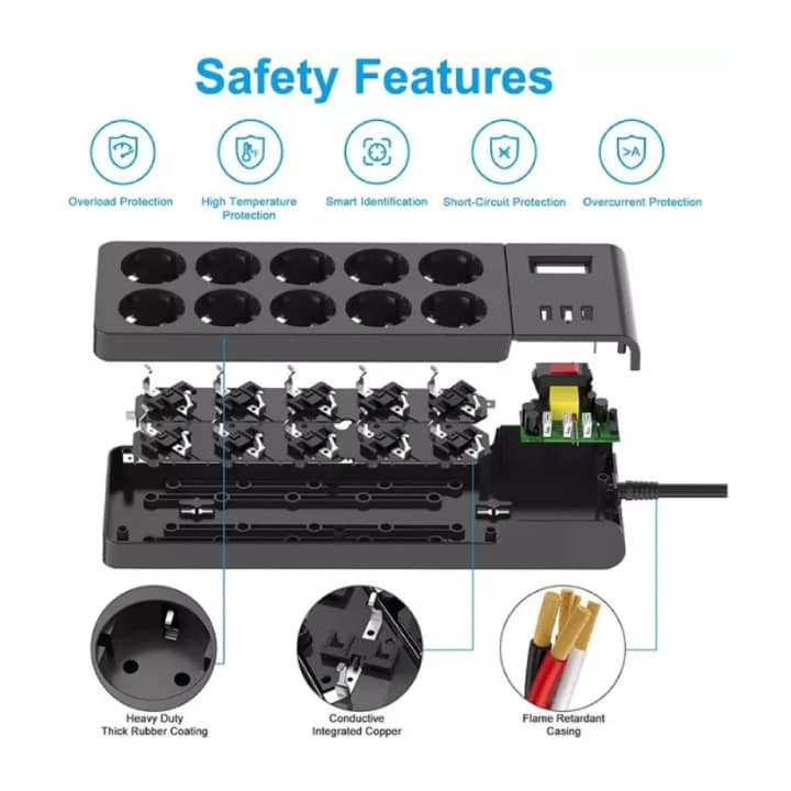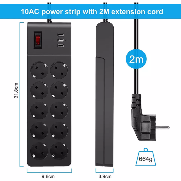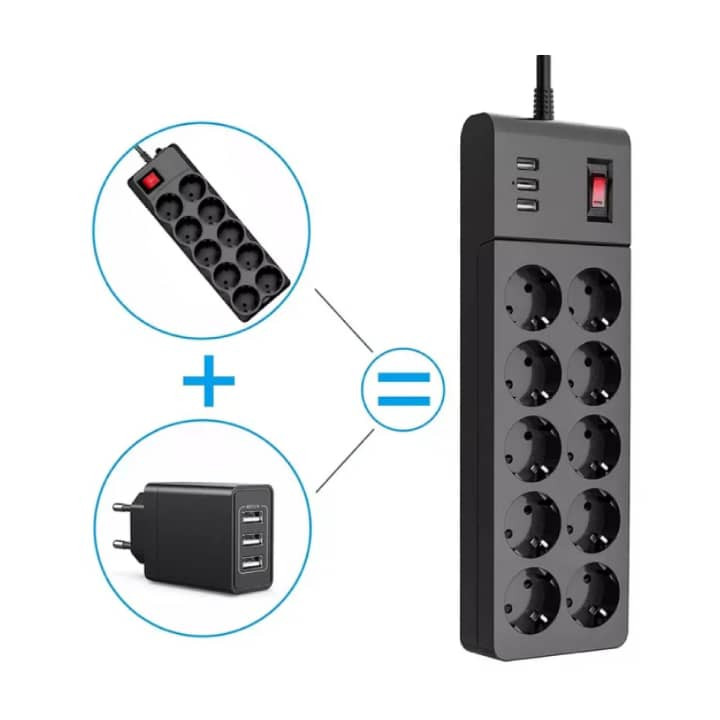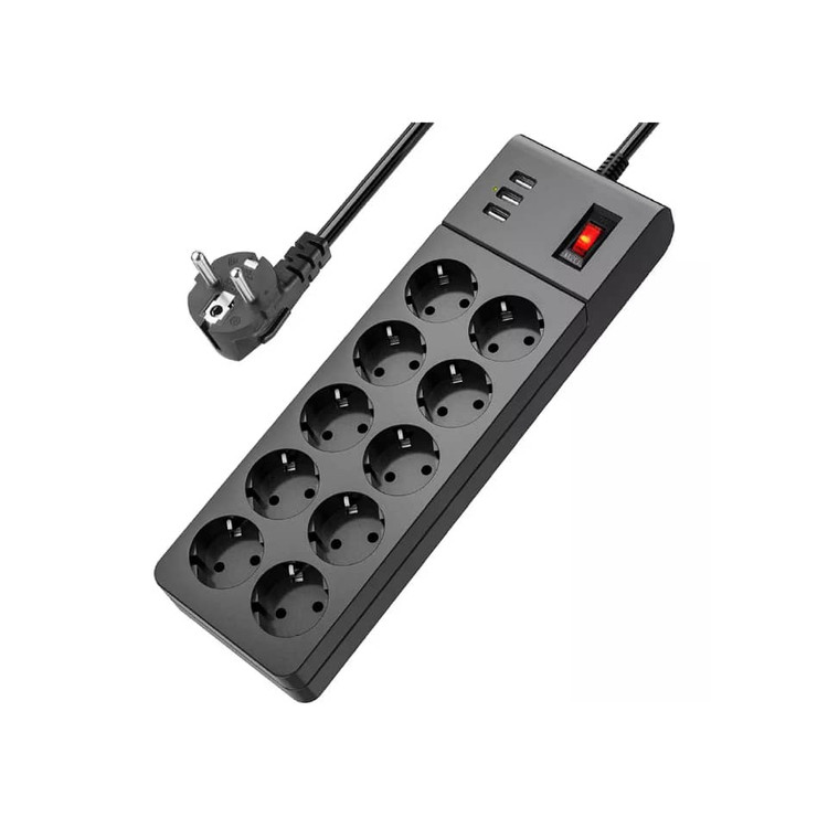 پریز برق ۴۰۰۰ وات متناوب + 3 پورت USB نوار برق فضای کمی روی میز یا زمین شما ایجاد می کند و دسکتاپ شما را منظم می کند، تمام نیاز شارژ شما را به طور همزمان برآورده می کند.