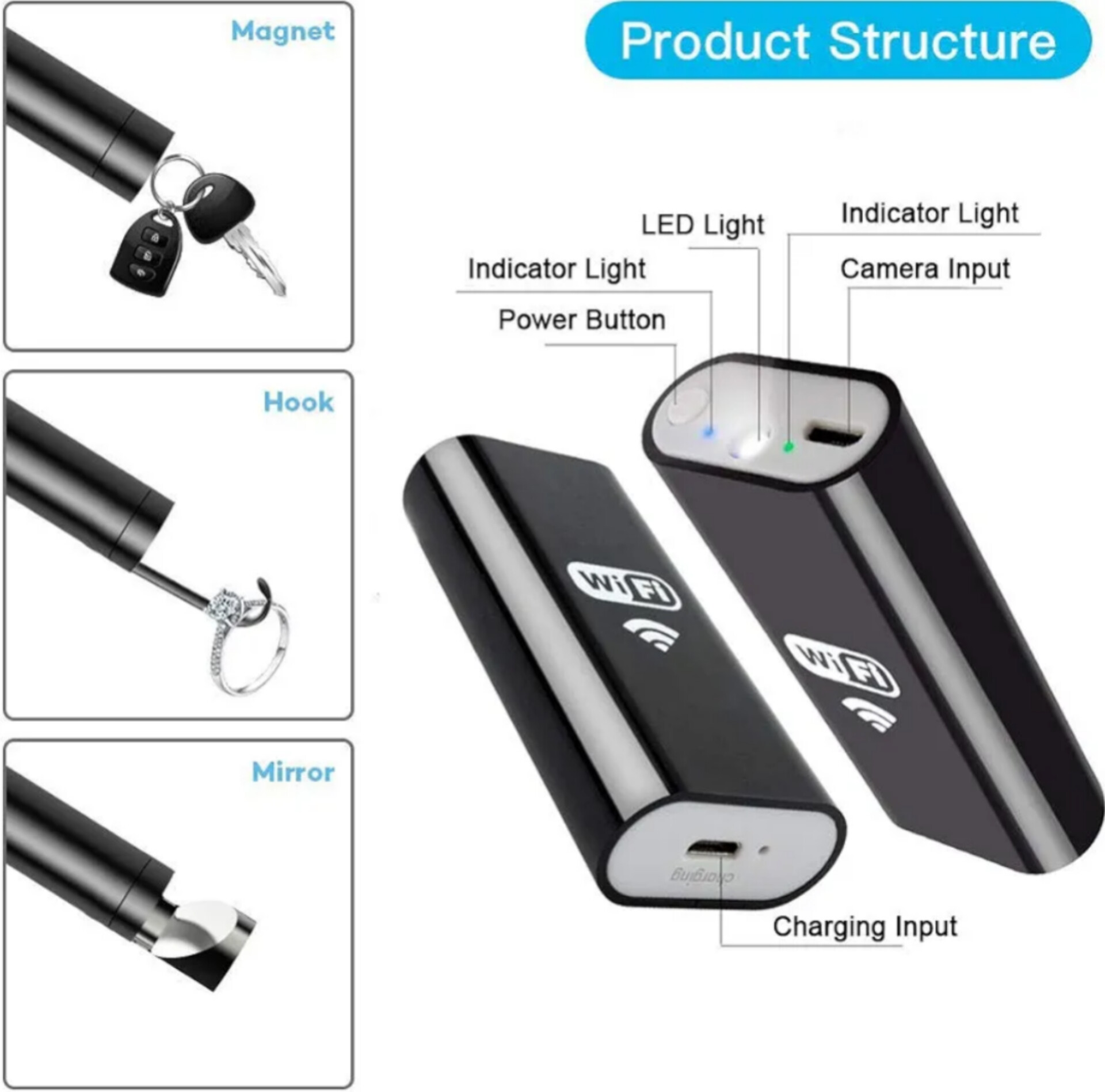 سازگار با سیستم عامل iOS/Android/Windows/Mac در بازار، اکثر آندوسکوپ ها فقط برای سیستم اندروید مناسب هستند. این آخرین مدل BEVA WiFi برای iOS نیز مناسب است. کاربر آیفون اکنون در دسترس است! 6 چراغ LED قابل تنظیم مجهز به 6 چراغ LED قابل تنظیم روشنایی برای بهبود دید حتی در محیط های تاریک. آندوسکوپ و پروب ضد آب طراحی شده با آندوسکوپ ضد آب IP67، امکان دسترسی کارآمد به لوله های سفت، تیره، مرطوب و غیره را فراهم می کند. برای مدت کوتاهی مناطق زیر آب کم عمق، شکاف ها و سوراخ ها را بررسی کنید. لوازم جانبی - قلاب، آهنربا، و آینه های جانبی لوازم جانبی مختلف به شما در حل مشکلات مختلف کمک می کند. کابل نیمه سفت و سخت قابل خم شدن است و برای انواع فضاهای بلند و تنگ مانند کانال های فاضلاب، دریچه های هوا برای تهویه مطبوع و دیوارها، سقف ها و لوله ها مناسب است