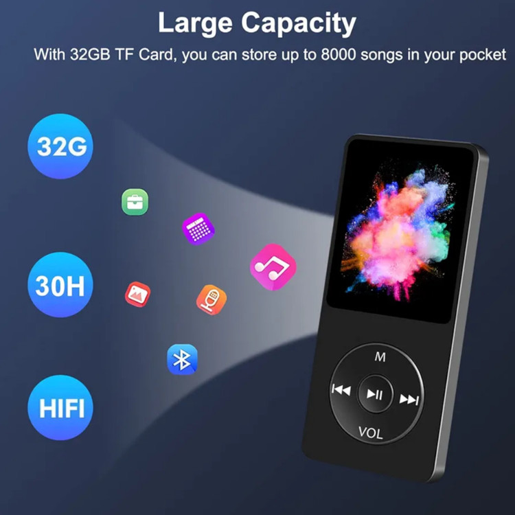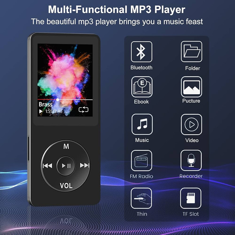 🎵 پخش کننده رسانه چند منظوره و اقتصادی: صفحه نمایش 1.8 اینچی، موسیقی، ویدئو MP4، ضبط، رادیو FM، ساعت زنگ دار، کرونومتر، پخش تصادفی موسیقی، خاموش/خواب خودکار، اکولایزر موسیقی، تکرار AB، پخش سریعتر/آهسته تر و غیره، کوچک اما قدرتمند