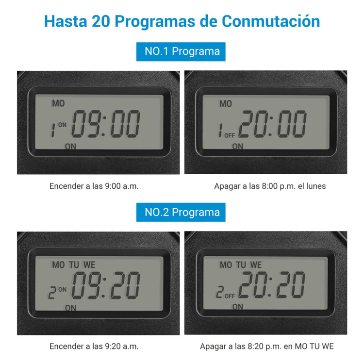 آسان برای استفاده: تایمر با لغو دستی و شمارش معکوس / عملکرد تصادفی. جابجایی آسان به ساعت تابستانی؛ حداکثر 20 برنامه را می توان در هر زمان در 7 روز تنظیم کرد. تکرار خودکار هفتگی. عملکرد تصادفی: زمانی که تایمر در عملکرد تصادفی است، زمان باز شدن از ساعت 18:00 تا 6:00 روز بعد به صورت تصادفی است. در این مدت زمان اسلات زمانی 15 تا 30 دقیقه و زمان خاموشی 45 تا 60 دقیقه است. پشتیبان گیری باتری باتری قابل شارژ داخلی می تواند برنامه تنظیم شده را در صورت قطع برق حفظ کند و می تواند به استفاده ادامه دهد. بدون نیاز به تنظیم مجدد، زندگی شما را راحت تر می کند. مناسب برای استفاده در فضای باز: تایمر درجه IP44 با حلقه لاستیکی ضد آب و پوشش محافظ، حداکثر توان بار 3680 وات، 16 A. ایده آل برای نورپردازی در فضای باز و فواره ها. ایمنی و تضمین: سوئیچ برای سوکت با قفل کودک، دیگر ترس از لمس تصادفی وجود ندارد. ما به شما یک سال گارانتی ارائه می دهیم، در صورت داشتن هر گونه سوال می توانید با ما تماس بگیرید