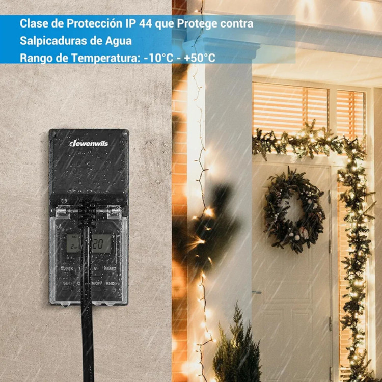 سوکت تایمر فضای باز DEWENWILS، سوئیچ تایمر دیجیتال IP44 با عملکرد تصادفی، 20 برنامه تعویض برای تزئین کریسمس، پمپ حوض، روشنایی بالکن، 16 A/3680 W، بسته 2 عددی