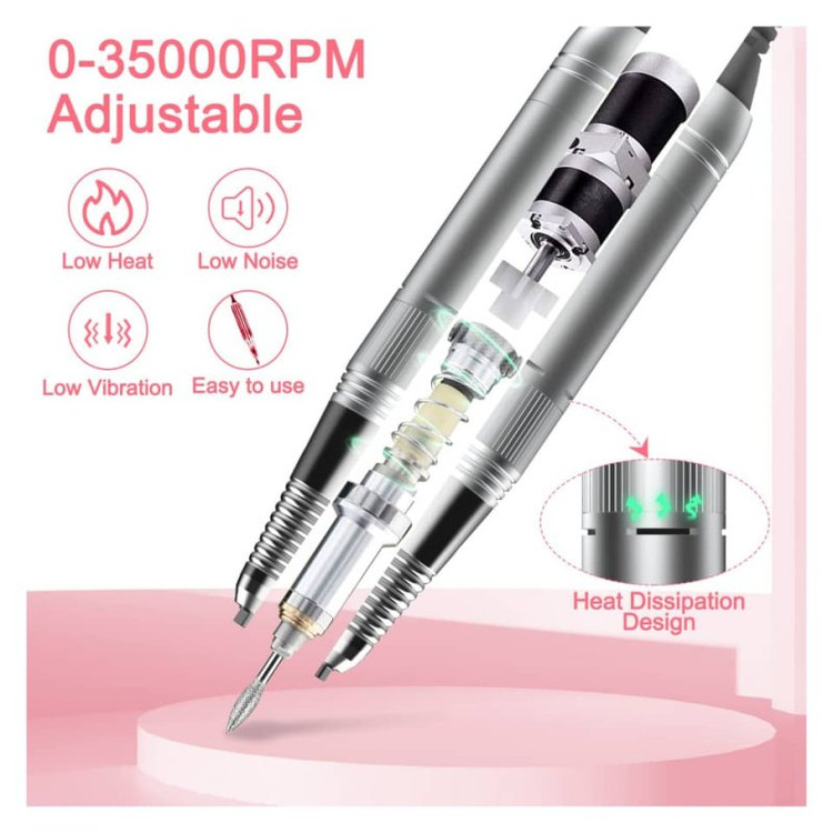 دستگاه دریل برقی ناخن nail grils با لرزش و سر و صدای کم، عملکرد صاف و ساخته شده از مواد آلیاژ آلومینیوم با درخشش فلزی منحصر به فرد طراحی شده است. سبک، با سوراخ تهویه، و گرما را جمع نمی کند. گیره در پشت برای بستن در کمربند، تونیک یا لباس خود، همچنین این دستگاه برای استفاده در سالن های زیبایی، سالن های خانگی و استفاده از مراقبت از ناخن در سفر بسیار مناسب است و میتواند بهترین انتخاب برای یک تکنسین ناخن حرفه ای یا علاقه مندان به مراقبت از ناخن باشد. با ظرفیت باتری بزرگ (2500 میلی آمپر ساعت). دارای شارژ سریع و عمر باتری عالی است، ابزار مانیکور را می توان 8 تا 10 ساعت پس از 2 ساعت شارژ کامل استفاده کرد